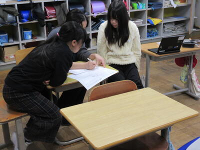 はげみの時間の様子です。授業で分からなかった問題に取り組んだり,発展問題に取り組んだりしながら学習しています。場所も自分で選んでいます。