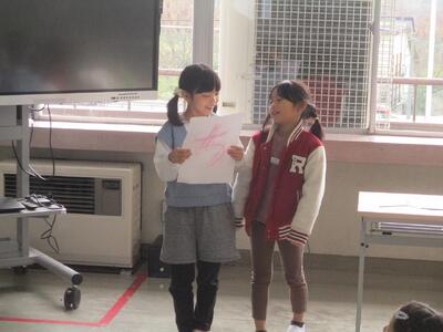 高崎小学校の子供たちの発表です。東郷小学校の子供たちから,たくさんのよい所を見つけてもらい,嬉しそうでした。