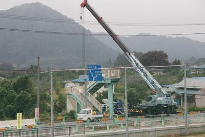 学校,グラウンド南側にある国道48号戦に架かっていた歩道橋が,10月4日,老朽化のために撤去されました。