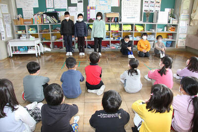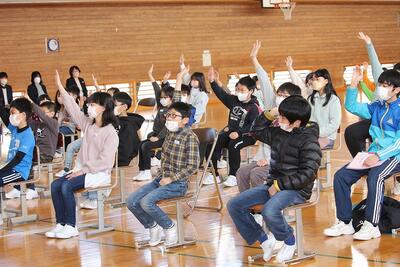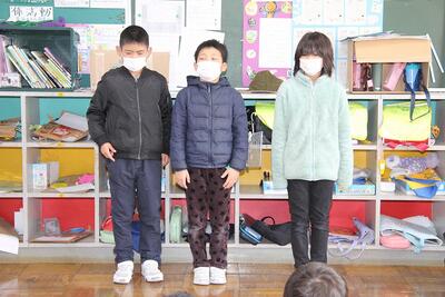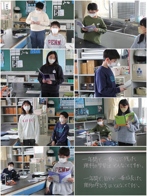 5年生は,1年間で,一番心に残った理科の学習はどんなことか,1年間で自分が一番成長した理科の学び方はどんなことですかの,2つのふりかえりを行って,全員が発表しました。