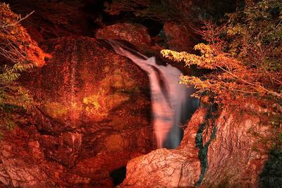 名瀑,関山大滝が現在ライトアップされています。日没から,20時30分までです。紅葉とのマッチングもすばらしいです。