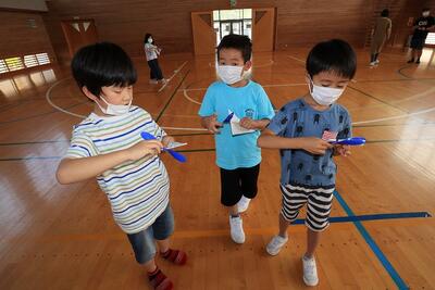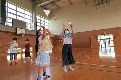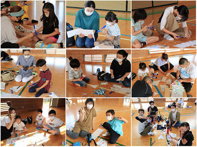 1年生の学年行事は,親子で凧づくりと,凧揚げです。