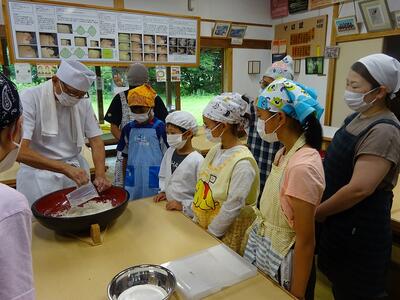 8月7日に,村山市「板そばの里村山」を会場にして,蕎麦打ち名人の先生に教わりながら,親子で楽しく蕎麦打ちを体験しました。