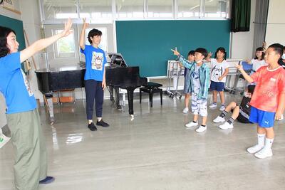 3つ目は,東根市小学校陸上大会の壮行式です。「5,6年生がせいいっぱいがんばれるように,4年生が下学年をリードして全校生で応えんする」を,めあてにしてがんばりました。教えるのはたいへんでしたが,ホイッスルをリズムよく吹くことができてよかったです。