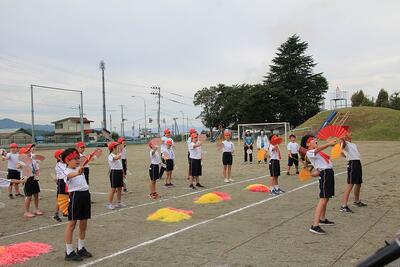 応援歌の歌詞やふりつけを何回も練習していました。声もしっかり出るようになってきましたね。