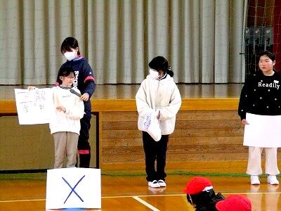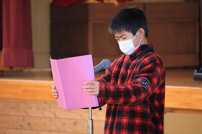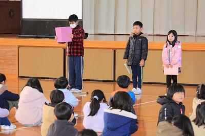 最初に,1年,3年,5年の児童代表が,2学期の反省と3学期や新年に向けた抱負を発表しました。