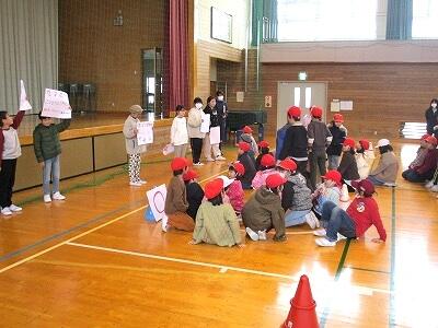 1つ目は学習発表会です。これまでそう合の学習で,関山ばやしを自分たちでひきつぐ活動を行ってきました。関山ばやしの大切さやかっこうよさを知ってもらい,1,2年生に関山ばやしをこれからもひきついでもらいたいと思いがんばりました。2年生のみなさんが来年やってみたいという気持ちになったようで,よかったです。「山神社まつり」や「ルックフォーでんしょうさい」でひろうして欲しいです。