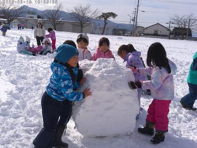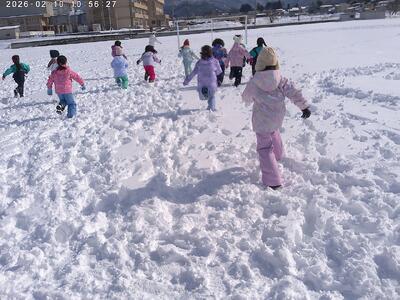1・2年生合同で、東郷小学校で雪遊びをしました。天候にも恵まれ、東郷小の広いグラウンドで思い切り体を動かして楽しみました。