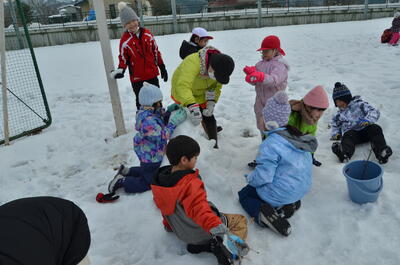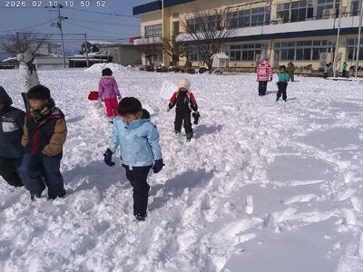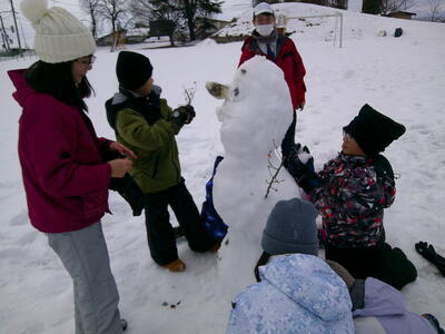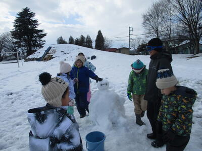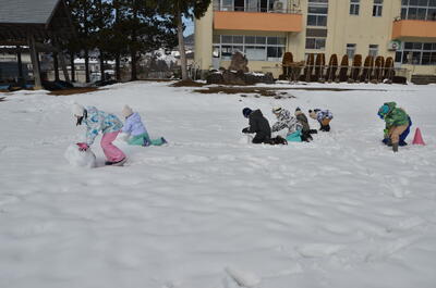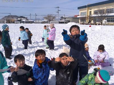 天気にも恵まれ、学年関係なくみんなでおおいに雪遊びを楽しみました。
