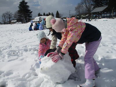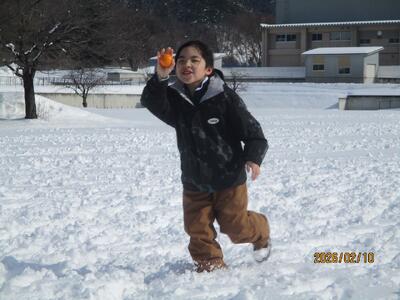 雪だるまづくりや雪上鬼ごっこ、ぐるぐるじゃんけん、雪合戦など、それぞれがやりたい遊びを選んで取り組みました。東郷小の子どもたちともすっかり打ち解け、協力して雪だるまを作ったり、追いかけあったりする姿がありました。