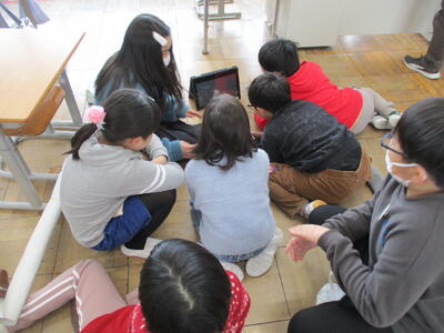 最初に、6年生に纏わるクイズを楽しみました。班ごとに丸くなって、「修学旅行の一番の思い出は?」や「学校で一番好きな場所は?」などのクイズの答えを話し合いました。6年生本人から正解が発表されると、喜びと驚きの声が響きました。