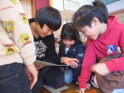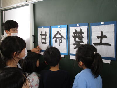 次に、1~5年生から6年生へ色紙とスライドショーのプレゼントです。班ごとにメッセージが書かれた色紙を読みながら語り合う姿や、6年生の6年間の歩みを振り返る姿が素敵でした。