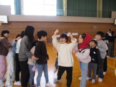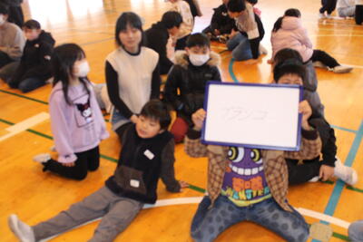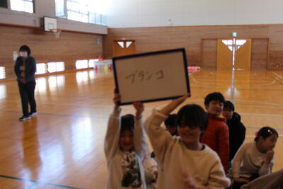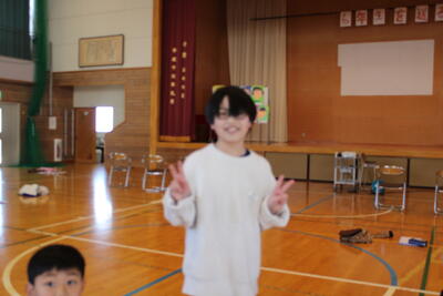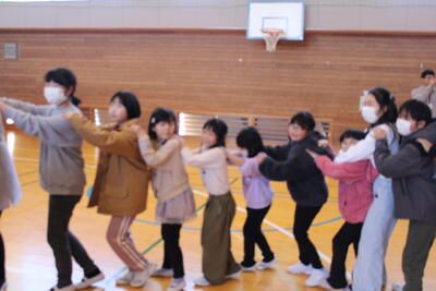 次は、ゲームタイムです。爆弾ゲームやじゃんけん列車をして楽しみました。じゃんけん列車では、6年生のるうくんが、最後まで勝ち残りました。さすが6年生ですね!