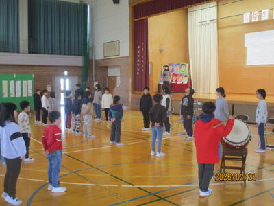 6年生へのエールでは、4年生全員が応援団となり、迫力のある応援で6年生へ「中学校に行っても頑張れ!」の思いを伝えました。