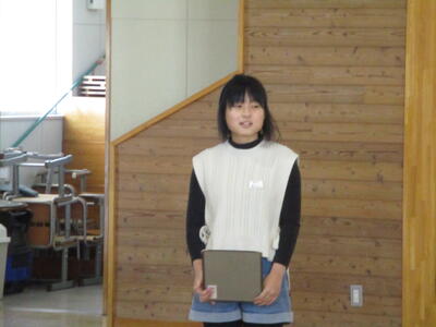 児童代表が感謝の言葉を述べ、全校生からの感謝のお手紙をお渡ししました。