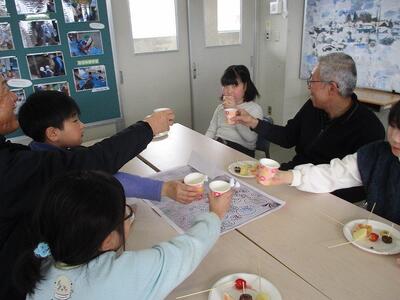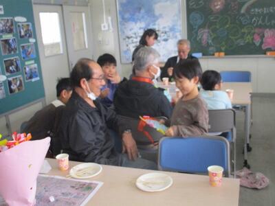 3・4年生の総合的な学習の時間でお世話になった関山囃子保存会・愛林公益会の皆様に感謝の会を開きました。