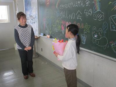 最後に,花束やお手紙を書いたメダルのプレゼントです。