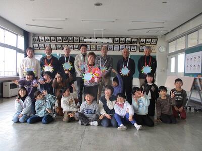 今年一年間,子供たちの学習にご協力いただいた関山囃子保存会・愛林公益会の皆様,ありがとうございました。