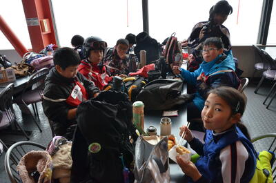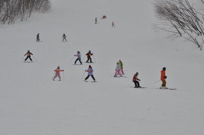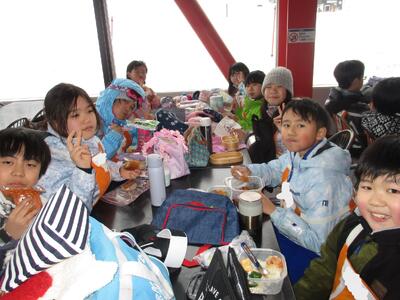 2日目は全校生でのウインタースポーツ教室。1日目でリフトに乗れなかった児童も2日目には上から滑ることができました。