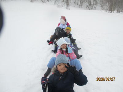 1、2年生も広いスキー場でそり乗りを楽しみました
