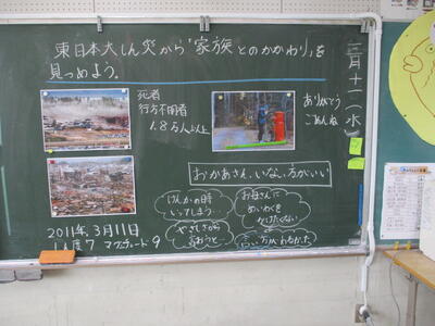 東日本大震災を題材に,「命の大切さ」と「家族への感謝」というテーマで道徳の学習を行いました。