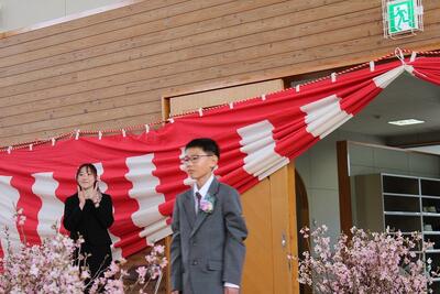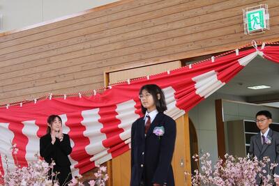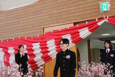 9名の卒業生が啓翁桜の花道を入場しました。