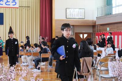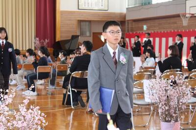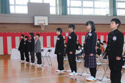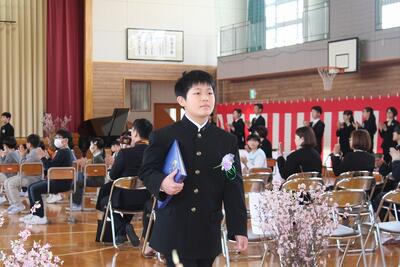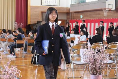 うららかな春の日差しのもと本日、第149回卒業証書授与式を執り行い、9名の6年生が卒業しました。