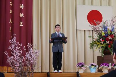 別れの言葉。在校生から卒業生へ、感謝の思いを届けました。卒業生は、6年間の思い出を振り返りながら、中学校に向けての決意を述べました。「栄光の架け橋」の合唱は、大変心にしみわたる歌声でした。