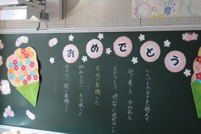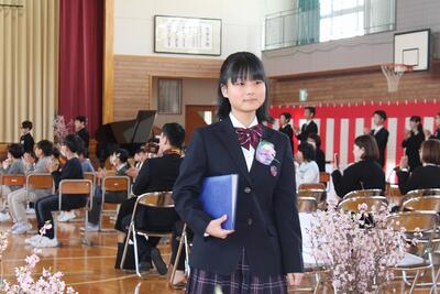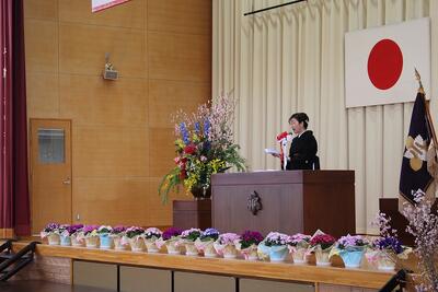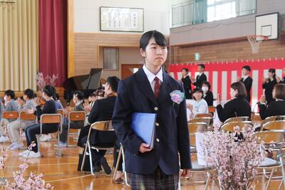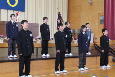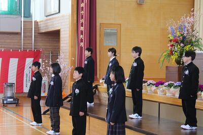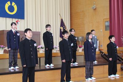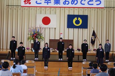 9名のみなさん、ご卒業おめでとうございます。未来に向かって羽ばたく皆さんを、本校職員一同応援しています。また、保護者の皆様、本日まで本校の教育活動にご理解ご協力いただき、誠にありがとうございました。