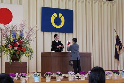 卒業証書を授与した後、「こんな自分になりたい。そのために、こんなことを大事にしたい」と未来への力強い決意の言葉を述べました。